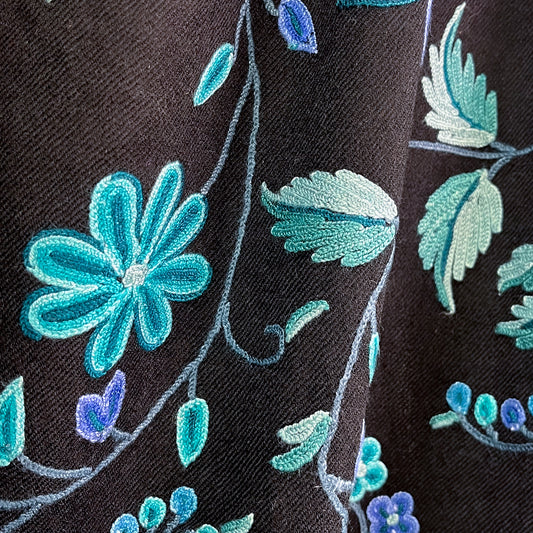 S-WA6001N_0242【オンラインショップ限定スペシャル価格】ウールアリー手刺繍ストール (ブラック/ターコイズ)【40%OFF】
