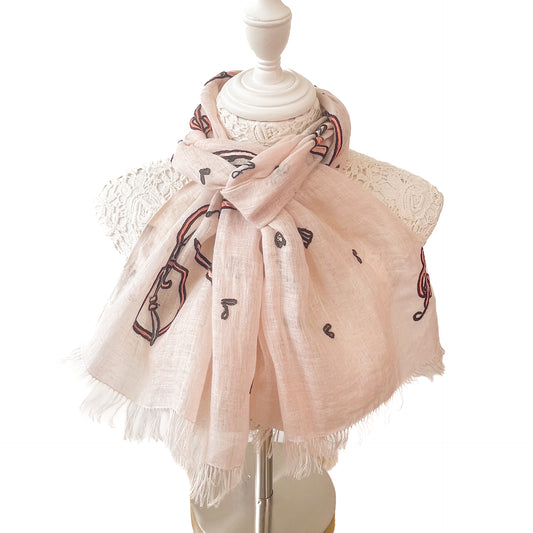 SM-LA2555CL_1182クラシック柄 リネン アリー手刺繍ストール(ライトピンクベージュ)