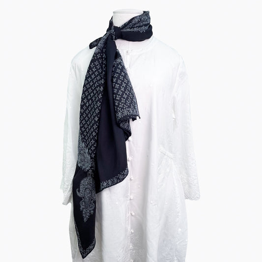 S-SN6000_0246シルク ニードル手刺繍スカーフ (ブラック/ライトブルー)