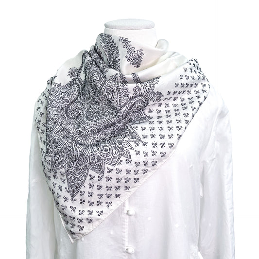 S-SN5010_0271シルク ニードル手刺繍スカーフ (ホワイト)