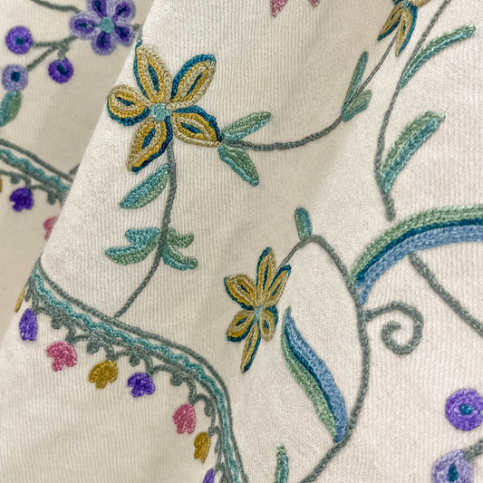 S-WA8002n_1329Spring Garden ウール アリー手刺繍ストール (ホワイト/マルチ)