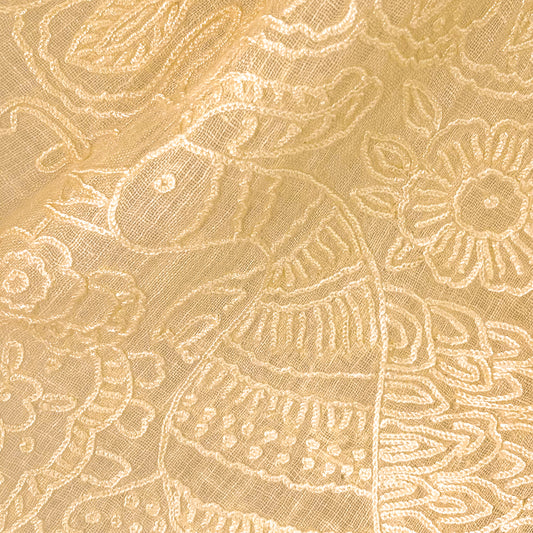 売り切れS-WTA5021_0152Abstract 薄手ウール&シルク アリー手刺繍ストール (ライトベージュ)