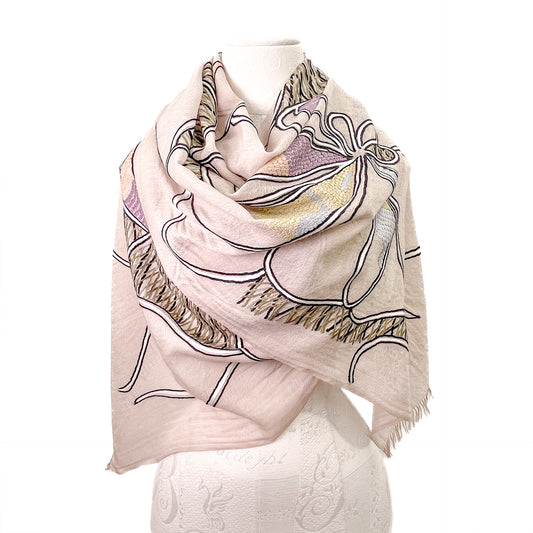 S-WTA5021_0152Abstract 薄手ウール&シルク アリー手刺繍ストール (ライトベージュ)