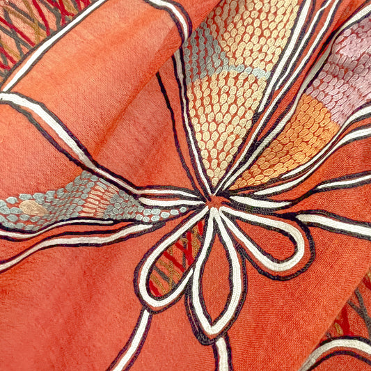 S-WTA5021_0171Abstract 薄手ウール&シルク アリー手刺繍ストール (オレンジ)