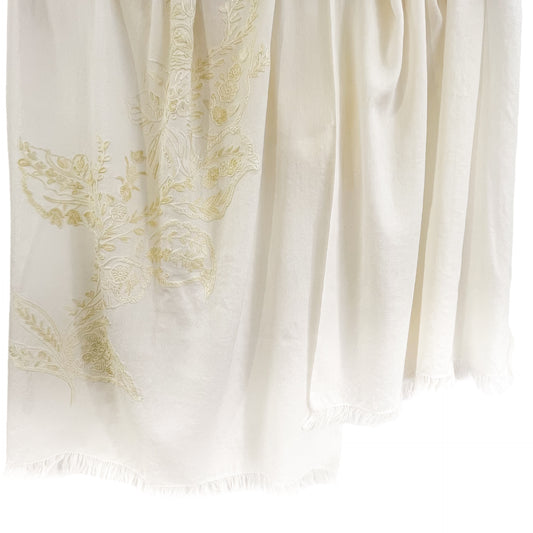【期間限定スペシャル価格】ウールアリー手刺繍ストール (ホワイト/イエロー)