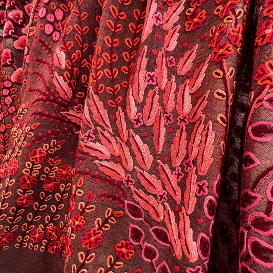 セールS-WTA8002_0267Spring Garden 薄手ウール&シルク アリー手刺繍ストール (ダークレッド/レッド)