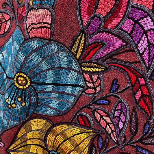 S-WTA9000_0253DARK FLOWER 薄手ウール&シルク アリー手刺繍ストール (ダークレッド)