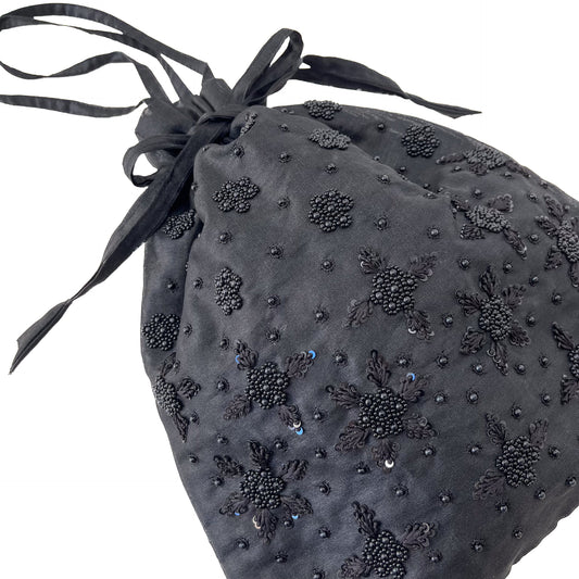 B-BK0500_0231ビーズ刺繍巾着(ブラック)