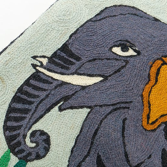 R-WA4040ELエレファント 象モチーフ手刺繍クッションカバー 40cm×40cm (ライトグリーン)