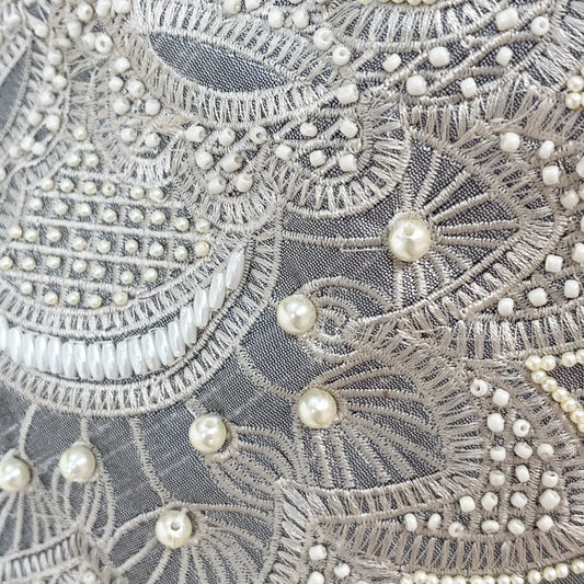 B-VN1514s_1416ビーズ刺繍 ポリエステルトートバッグ (グレー/ホワイト)