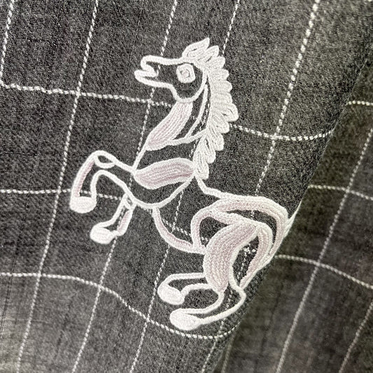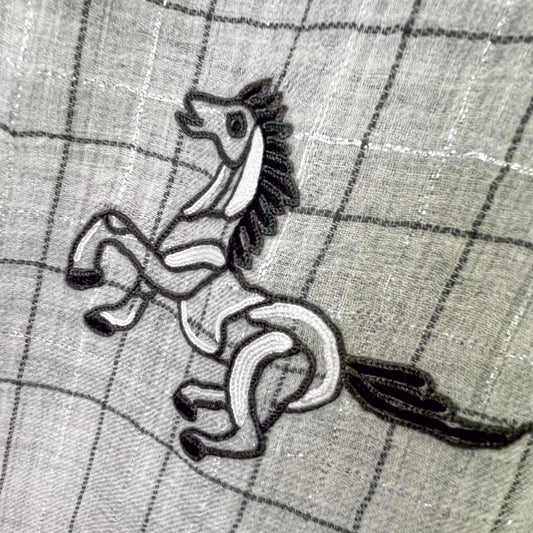 S-WTA9030_1504NEW GEOMETRIC 薄手ウール&シルク 手刺繍ストール (オフブラック)