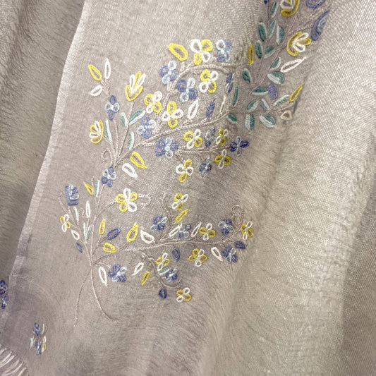 S-WSA1009_0092ウール&シルク アリー手刺繍ストール (ライトグレー)