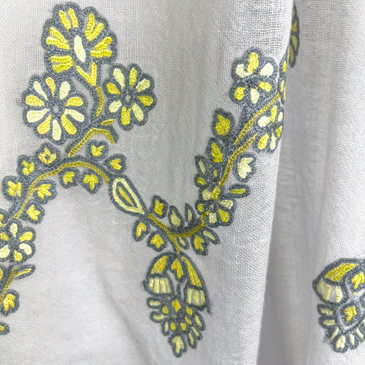 S-WTA2575_0097Jewelry Series 薄手ウール&シルク アリー手刺繍ストール (ライトグレー/イエロー)