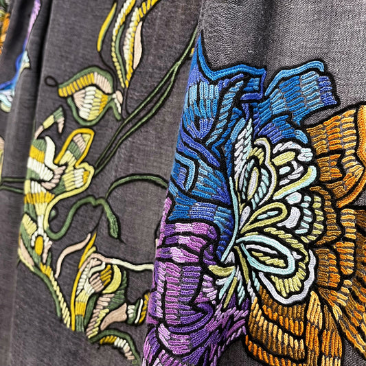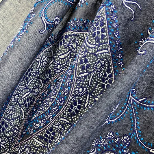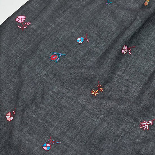 S-WTA9002_0093Italian Dream 薄手ウール&シルク アリー手刺繍ストール (ダークグレー)
