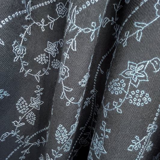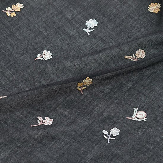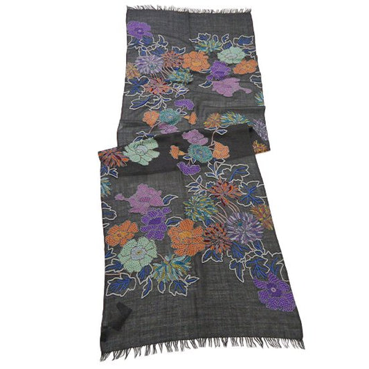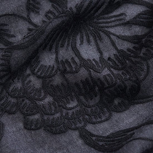 S-WTN2506_1504フラワー 薄手ウール&シルク ニードル手刺繍ストール(オフブラック)