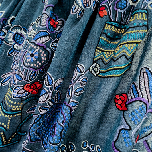 S-WTA5003_0333FLOWER POT ウール&シルク アリー手刺繍ストール (ダークネイビー)