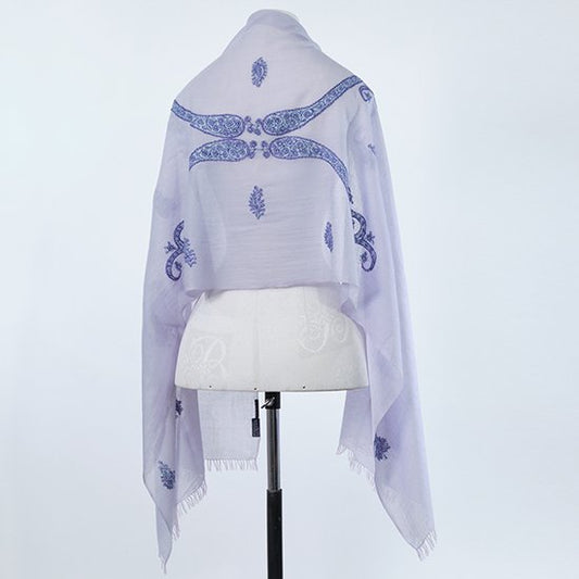 S-WTA2563_0122Dream In NICE 薄手ウール&シルク アリー手刺繍ストール (ライトパープル)