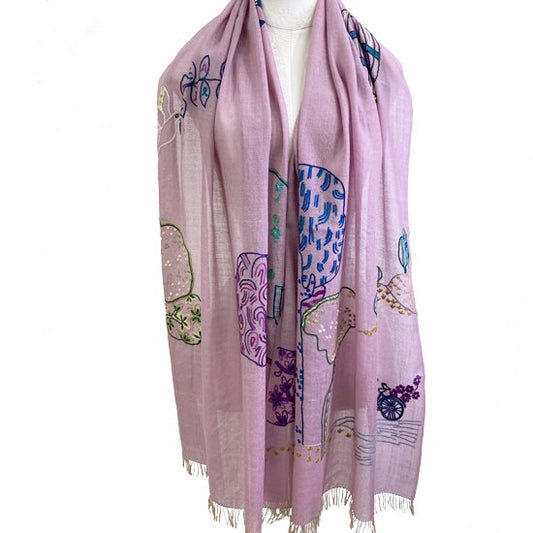 S-WTA2574SP_0122Jewelry Series 薄手ウール&シルク アリー手刺繍ストール (ライトパープル)