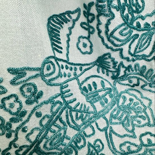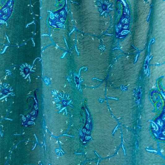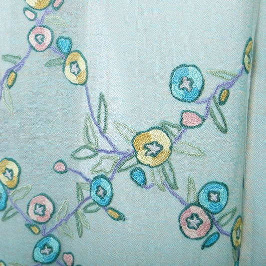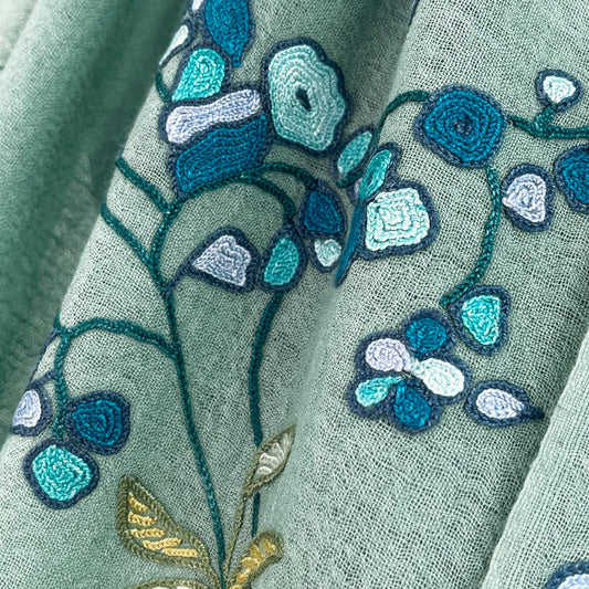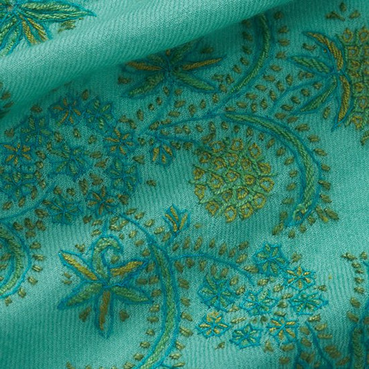 S-WTA1535_0076薄手ウール&シルク アリー手刺繍ストール (オパールグリーン)