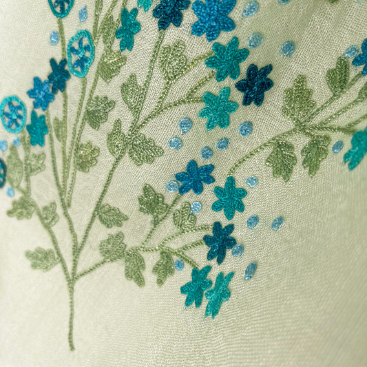 S-WTA2563_0062Dream In NICE 薄手ウール&シルク アリー手刺繍ストール(ライトグリーン)