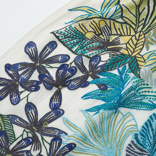 S-WN4010_0278NEEDLE FLOWERS ウール ニードル手刺繍ストール (ホワイト/ターコイズ)