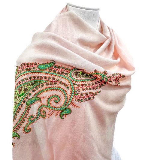 S-WTN2004_0039ウール&シルク ニードル手刺繍ストール (ピンクベージュ)