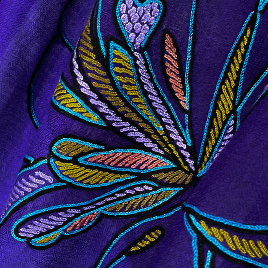 S-WFPA2002_0005Graphic Flower スーパーファインウール&シルク アリー手刺繍ストール(ロイヤルブルー)