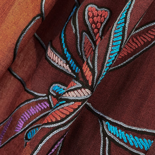 S-WFPA2002_0211Graphic Flower スーパーファインウール&シルク アリー手刺繍ストール(ブラウン)