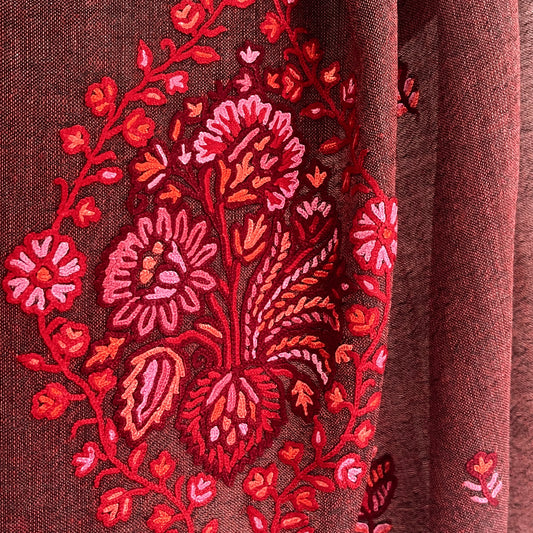 S-WTA2575_0253Jewelry Series 薄手ウール&シルク アリー手刺繍ストール (ダークレッド)