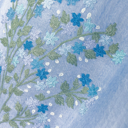ミモザ 薄手ウール&シルク アリー手刺繍細幅ストール (ライトブルー)