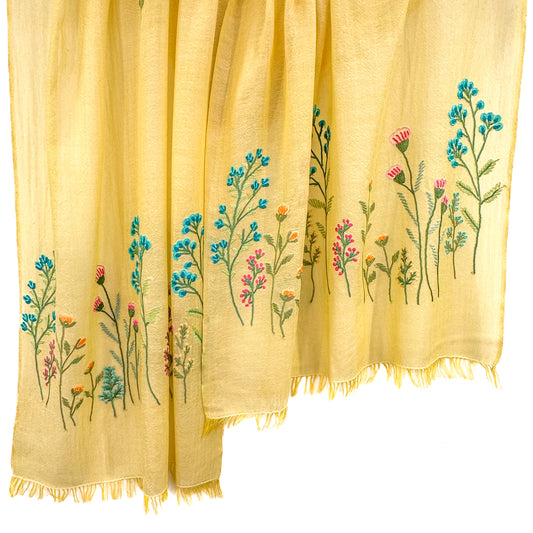 S-WTA2564_0191Wool & Silk Ali Hand Embroidered Stole (Yellow)