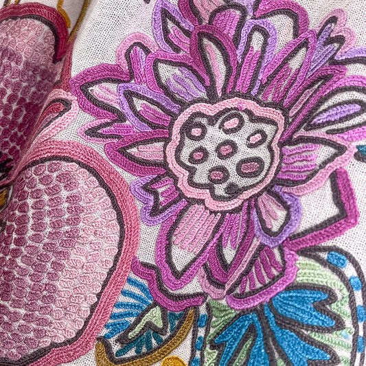 Mimosa Lightweight Wool & Silk Allie Hand Embroidered Narrow Stole (White)