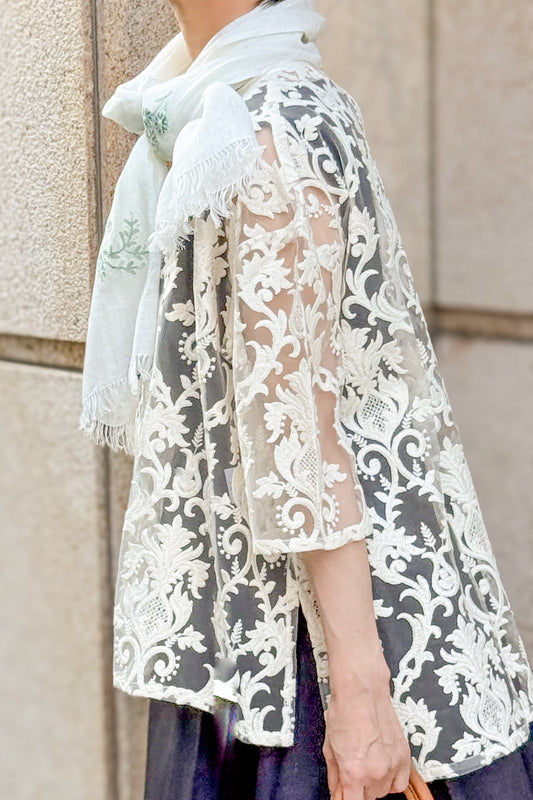 S-SN5010_0271Silk Needle-Embroidered Stole (White)