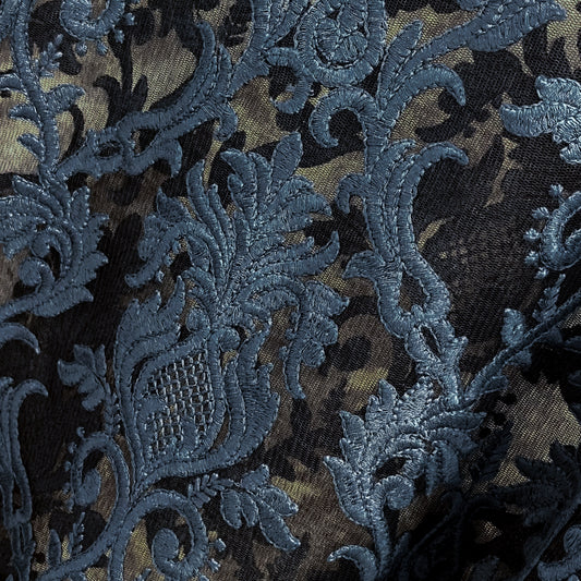 S-SN6000_0246Silk Needle-Embroidered Stole (Black/Light Blue)