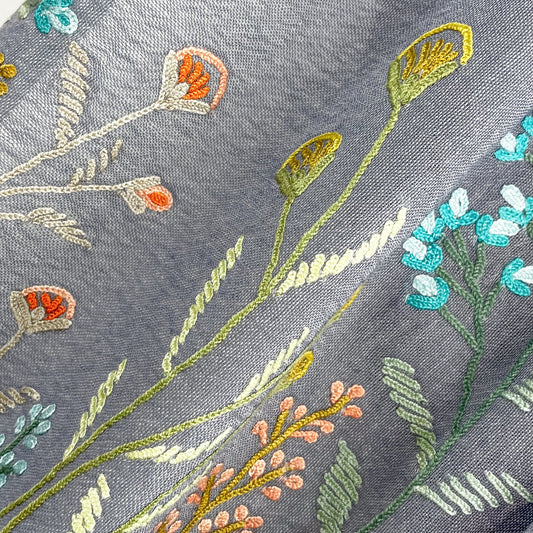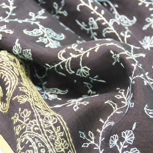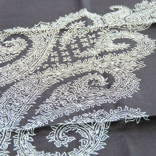 S-SN9035_0241Silk Needle Hand Embroidered Stole (Black/Gray)