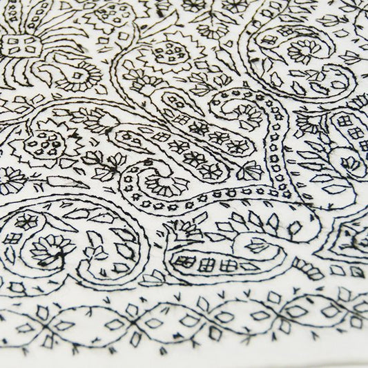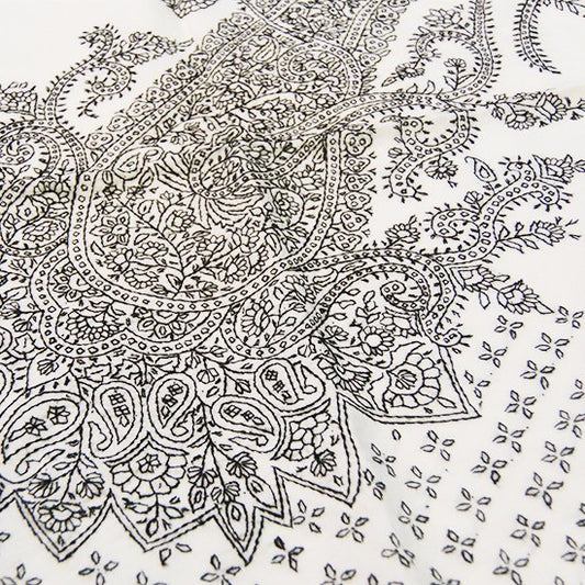 S-WTA2564_0091Wool & Silk Ali Hand Embroidered Stole (White)
