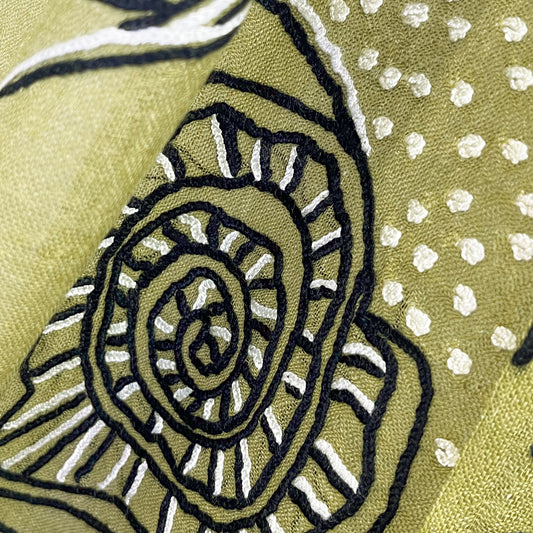 Wool & Silk Needle Embroidered Stole (Green)