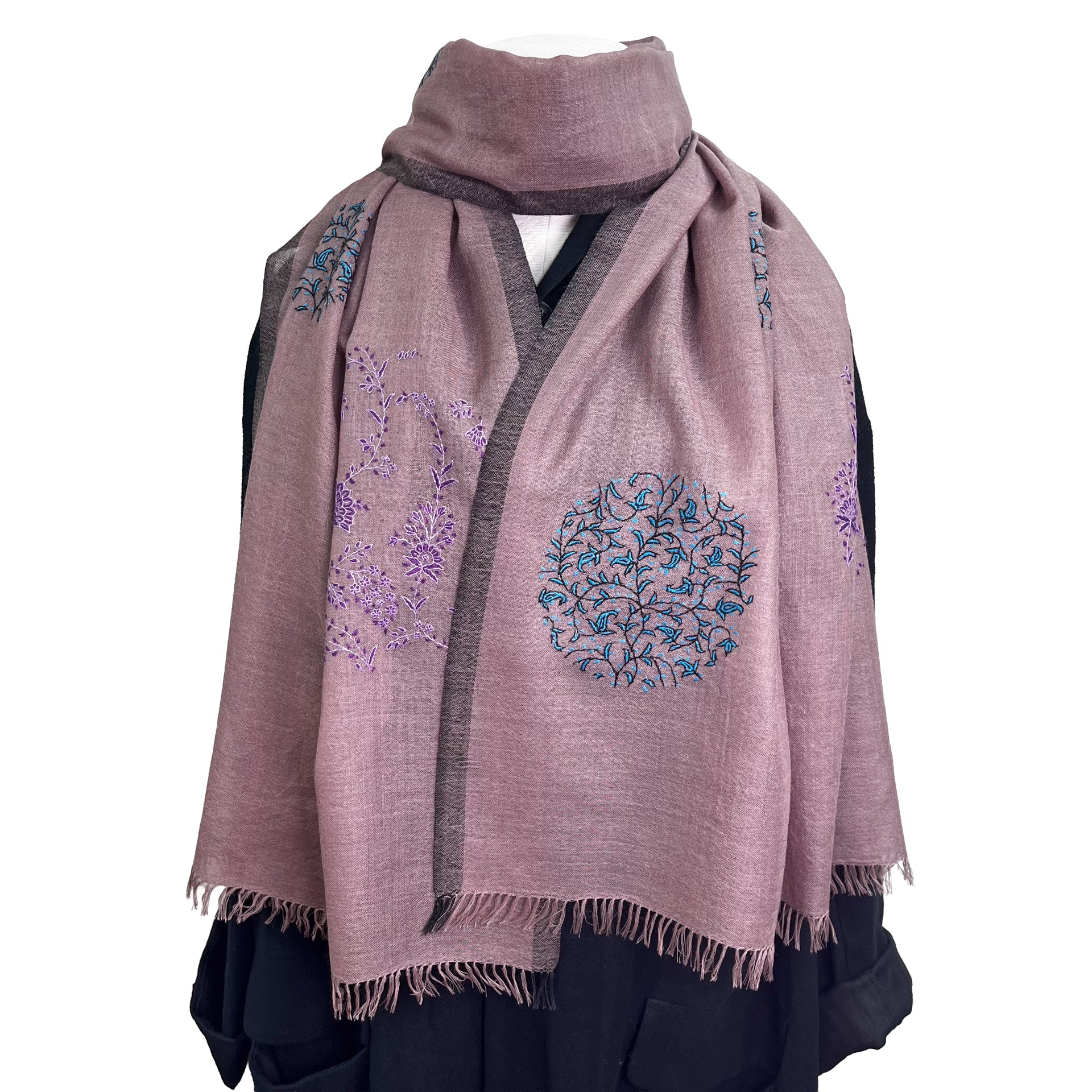 SaleS-WTN2004_0039Wool & Silk Needle Embroidered Stole (Pink Beige)