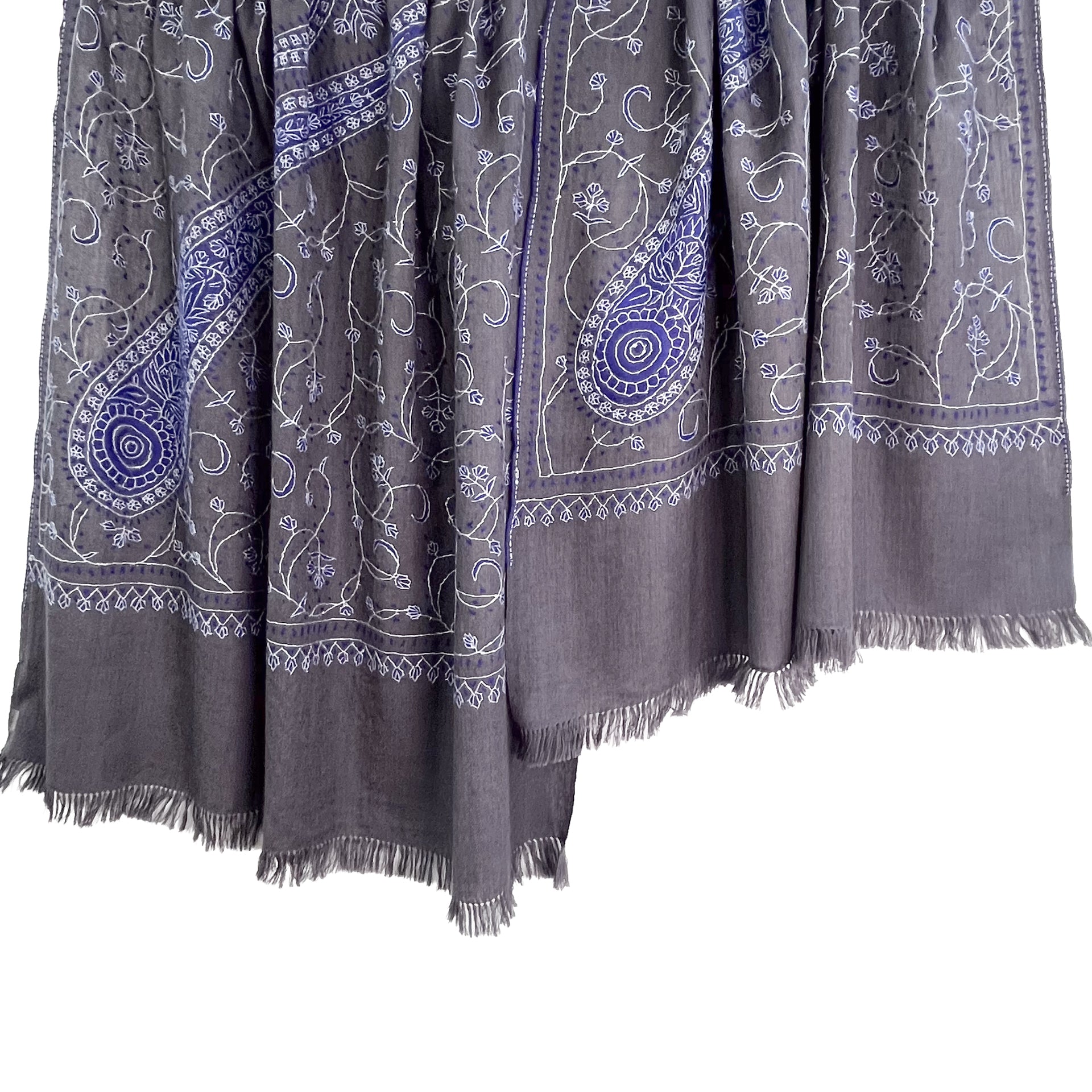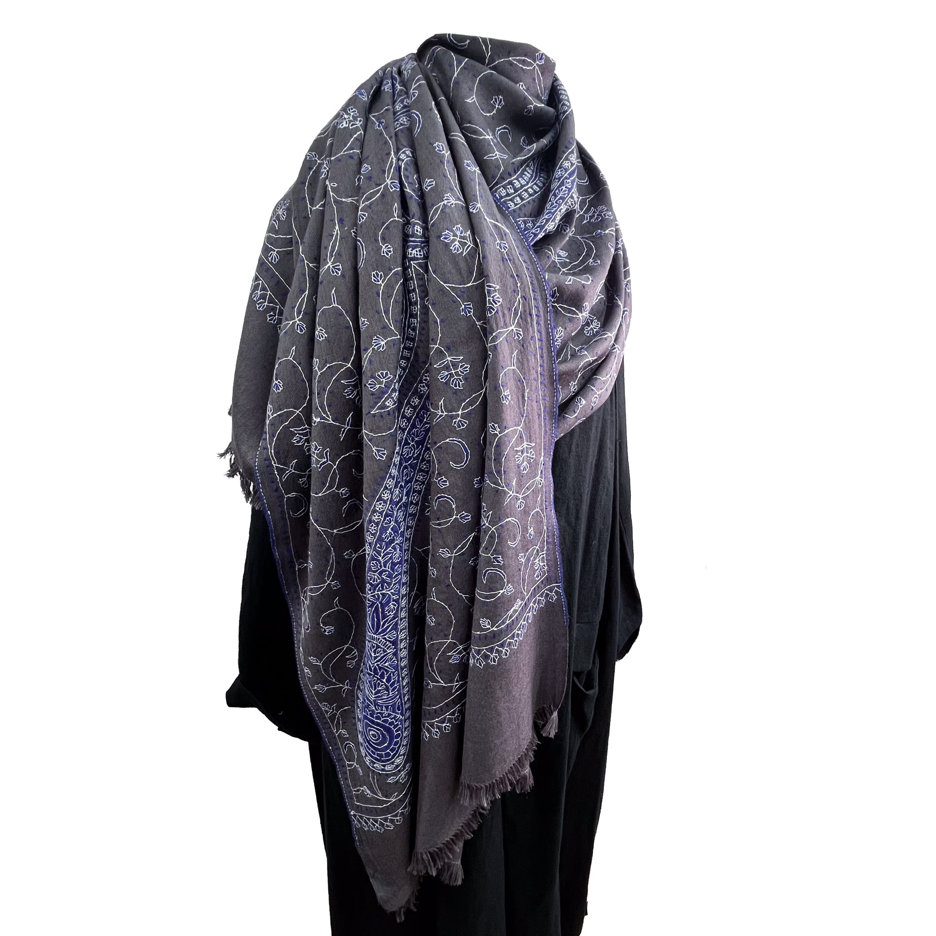 SaleS-WTN3011_0039Wool & Silk Needle Embroidered Stole (Green)