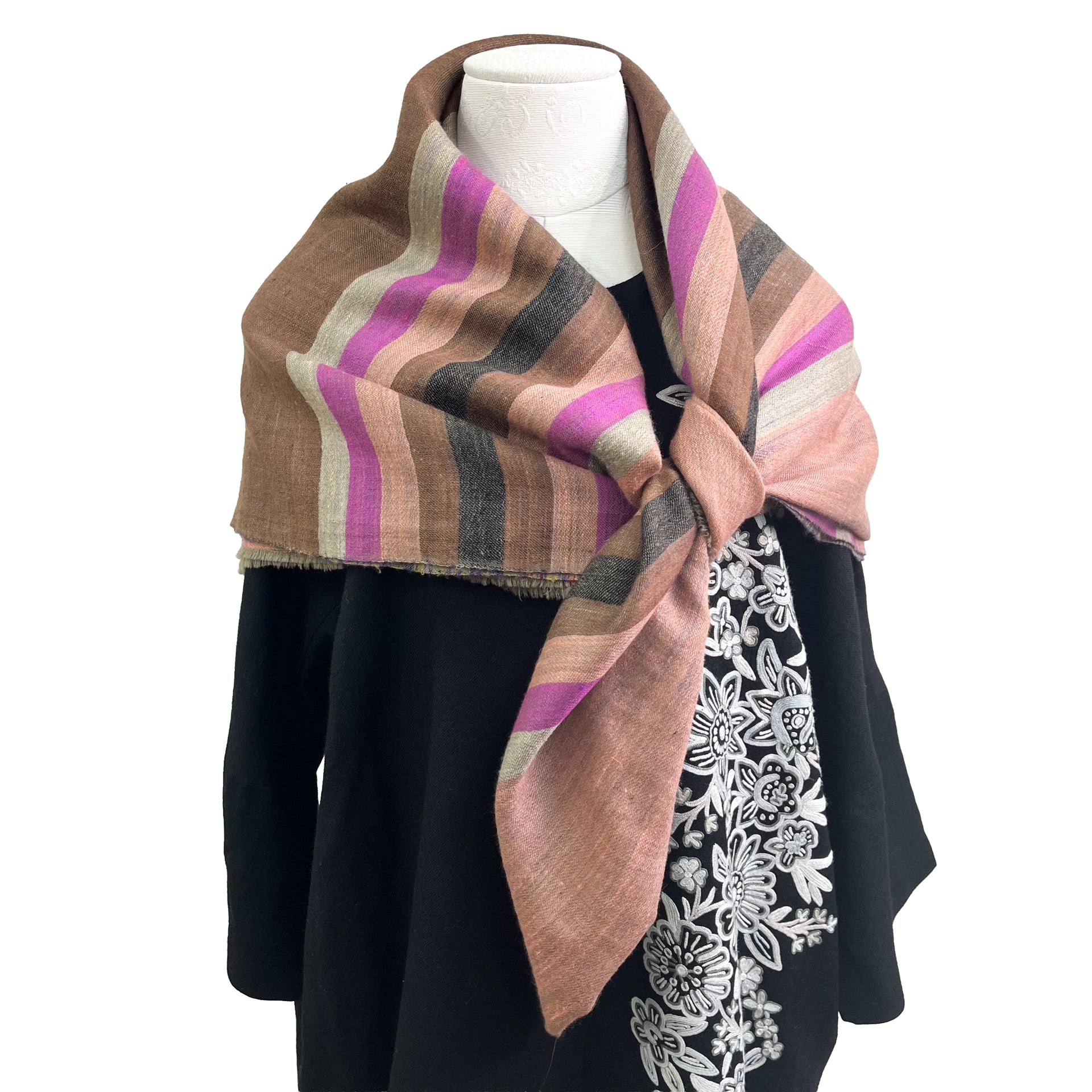 A luxurious 100% hand-spun and hand-woven cashmere stole.