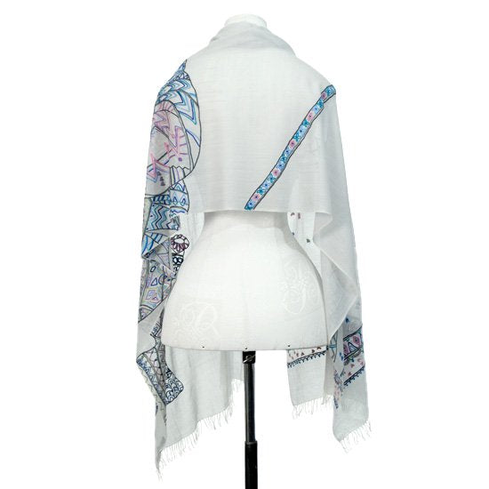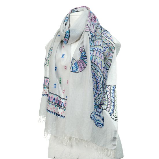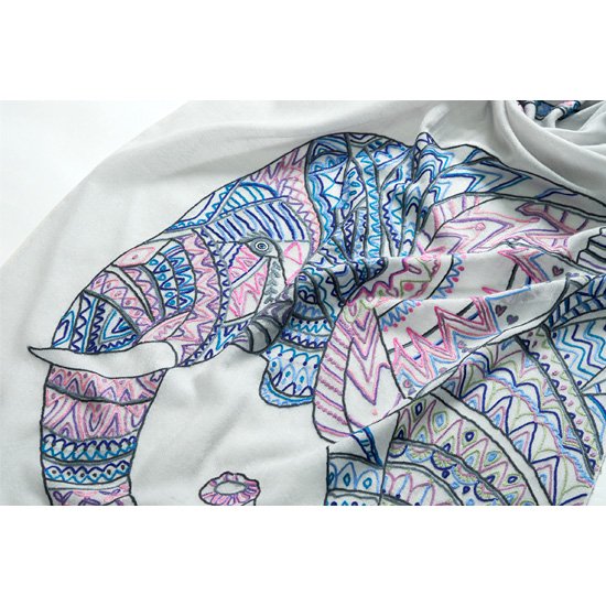 The ELLEPHANT motif is one of Tara Blanca's popular animal series. The elephant motif is hand-embroidered in detail on this scarf, giving it a luxurious and sophisticated design.