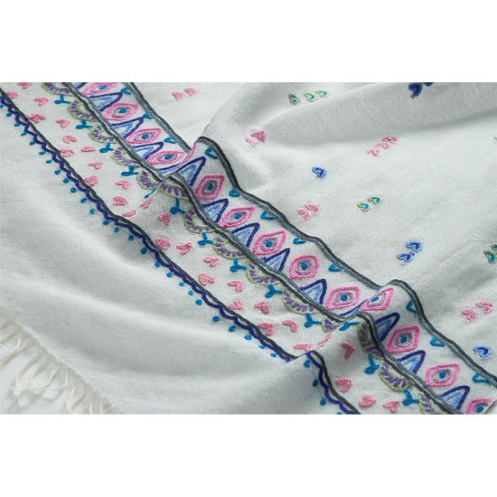 S-WTA9025_0271Wool & Silk Ally Hand Embroidered Stole (White)