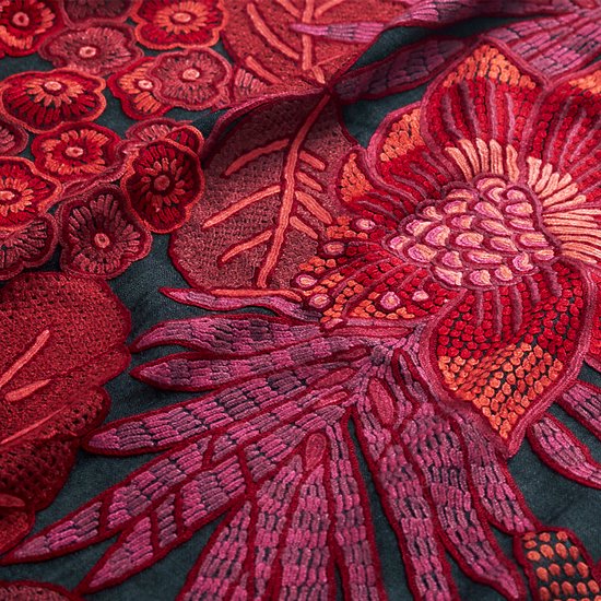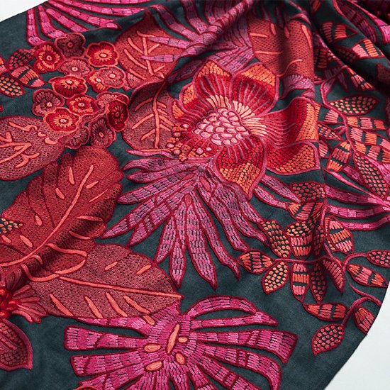RED DREAMTARA BLANCA's iconic scarf is a fusion of elegant and gorgeous motifs and outstanding craftsmanship. This is a piece from the RED series that stands out with its passionate crimson embroidery.