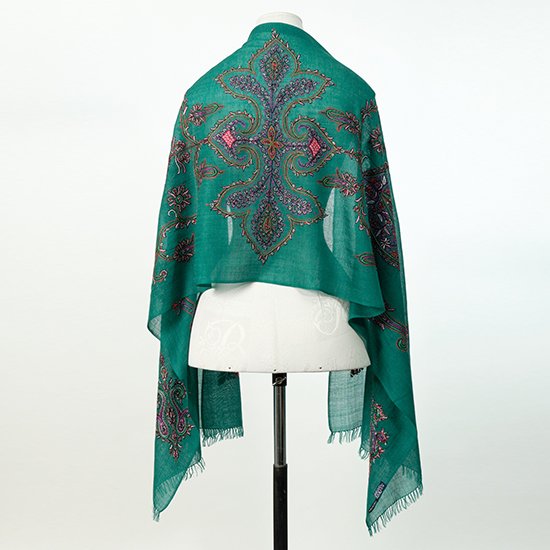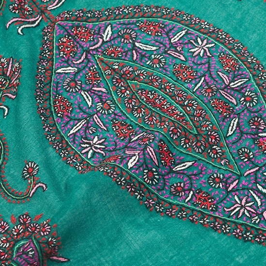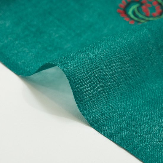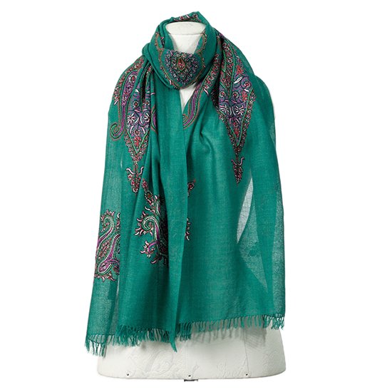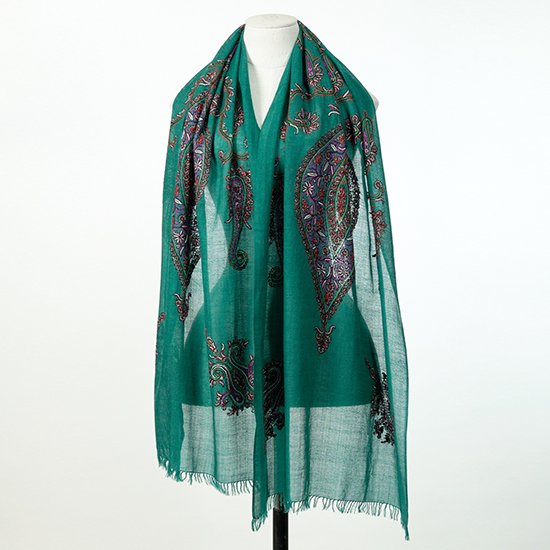 S-WTN4003_0061Lightweight wool and silk hand-embroidered stole (green)