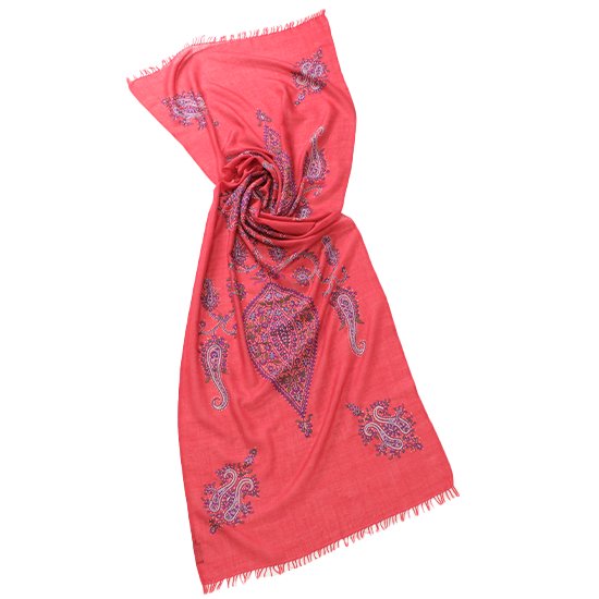 S-WTN4003_0251Wool & Silk Needle Embroidered Stole (Red)