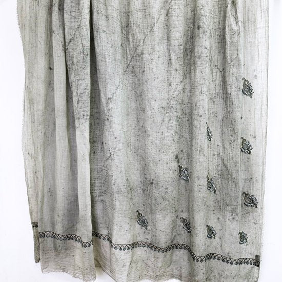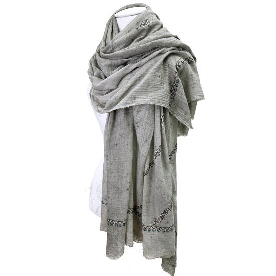 Japanese organic cotton hand-embroidered scarf (light gray)