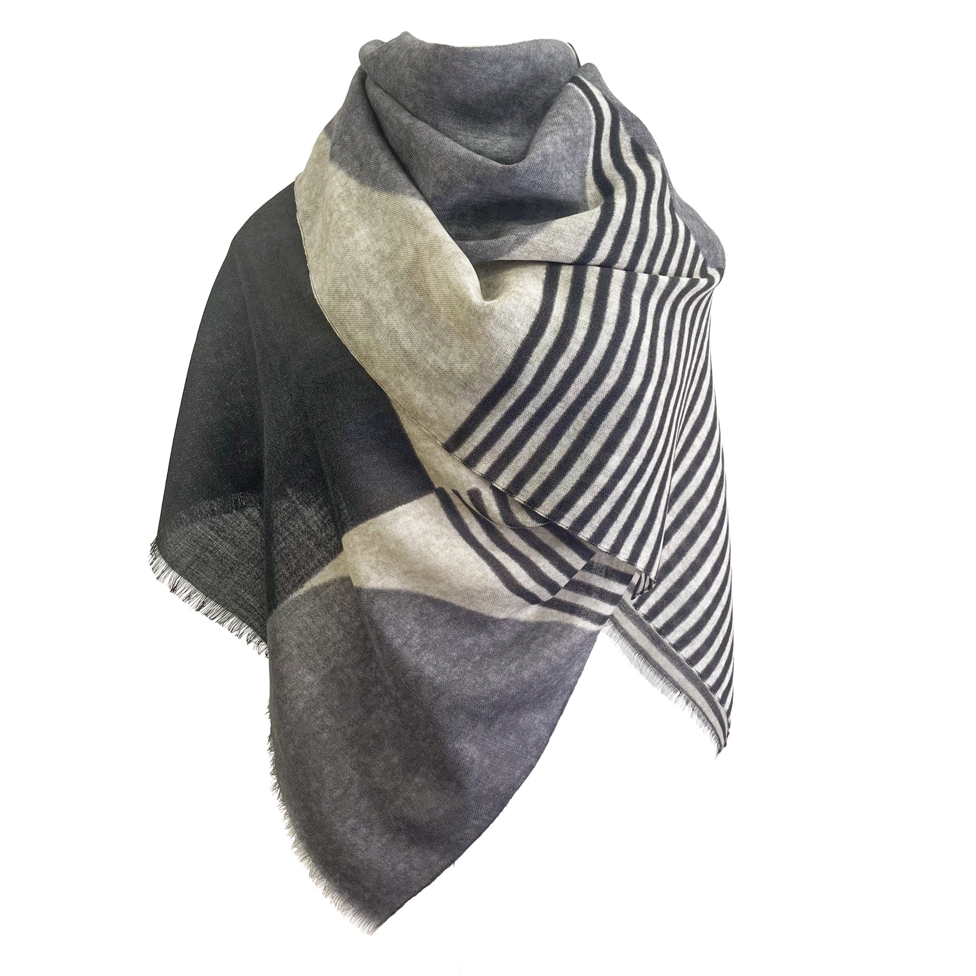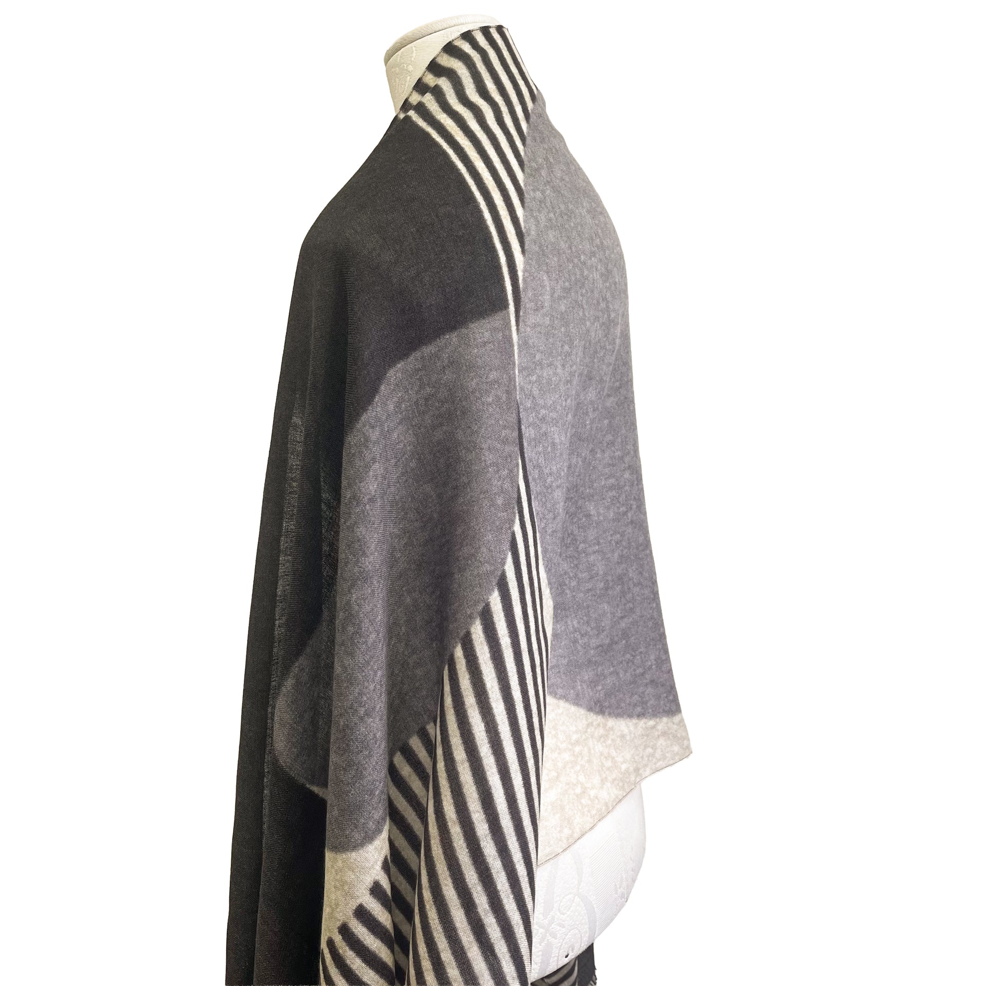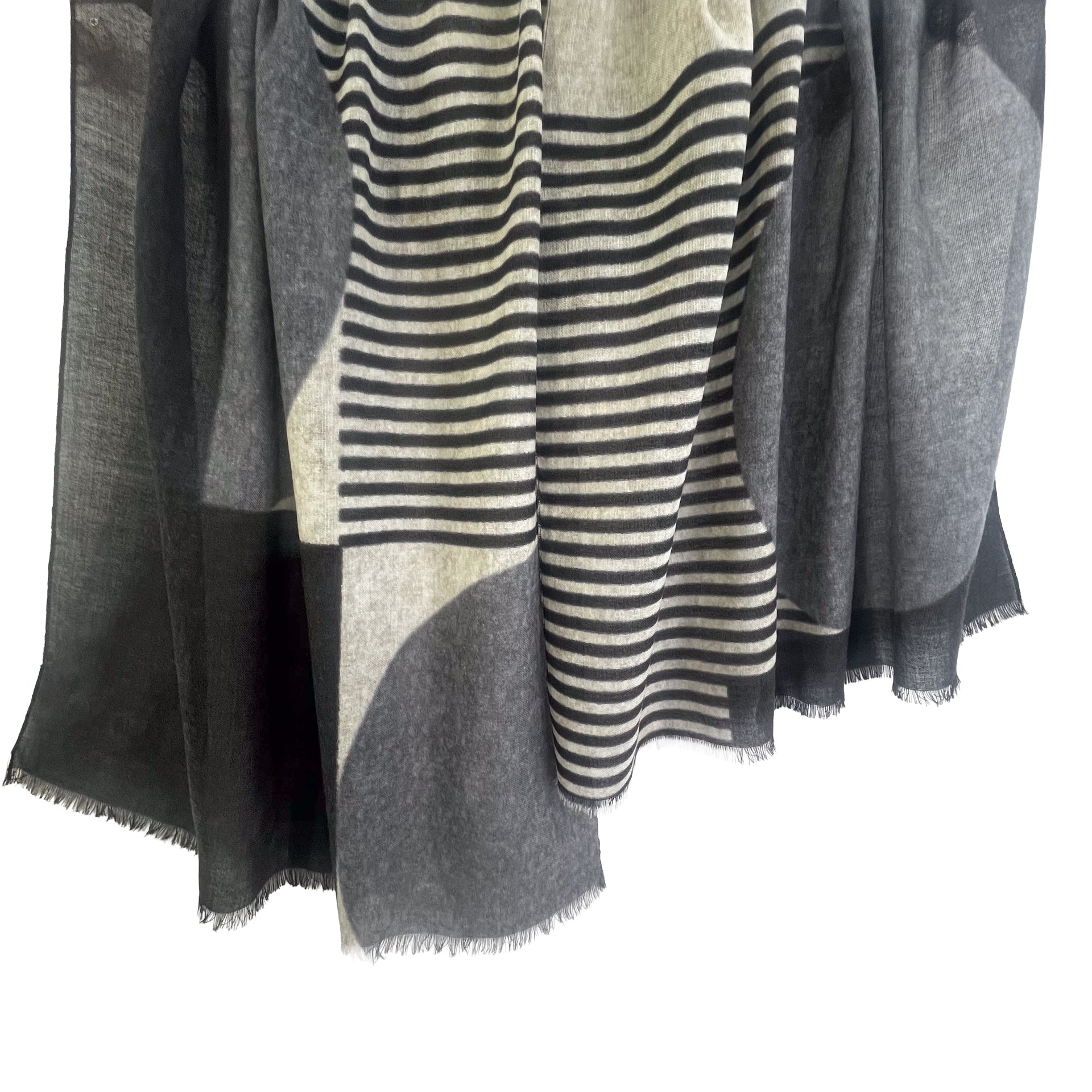 イタリア製ウールプリントストール(ブラック/ホワイト)