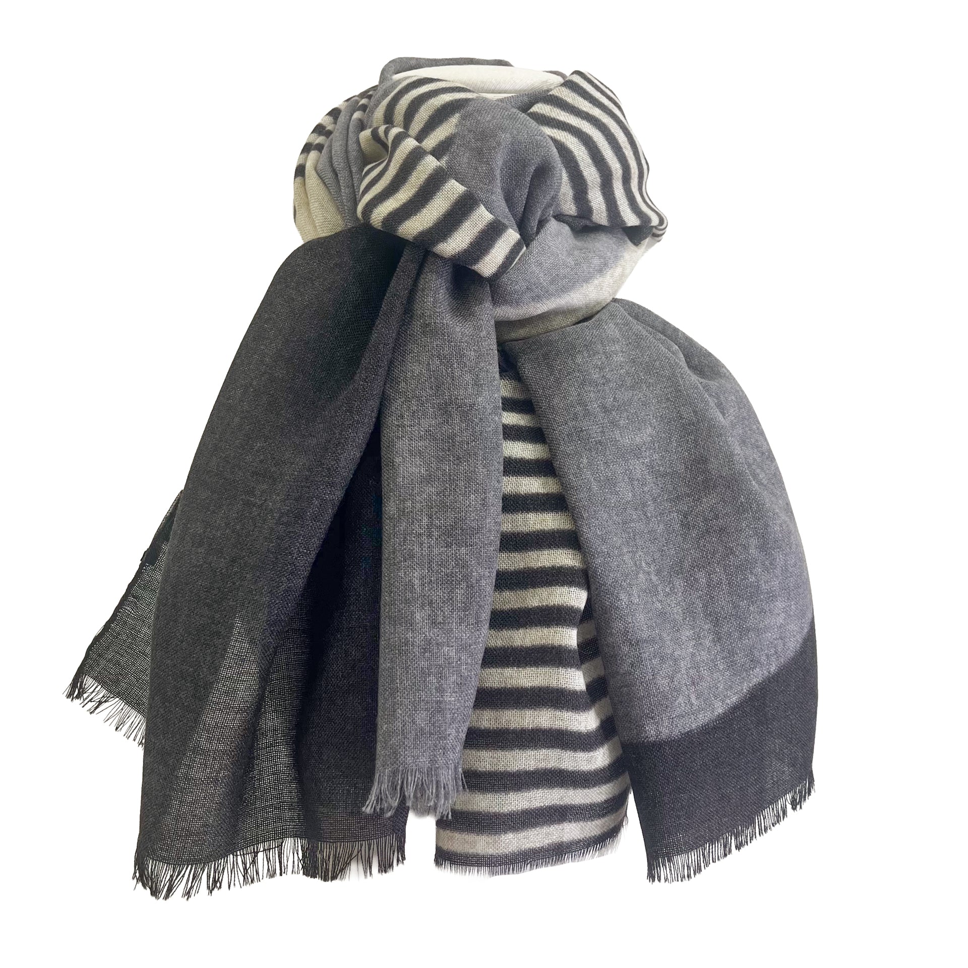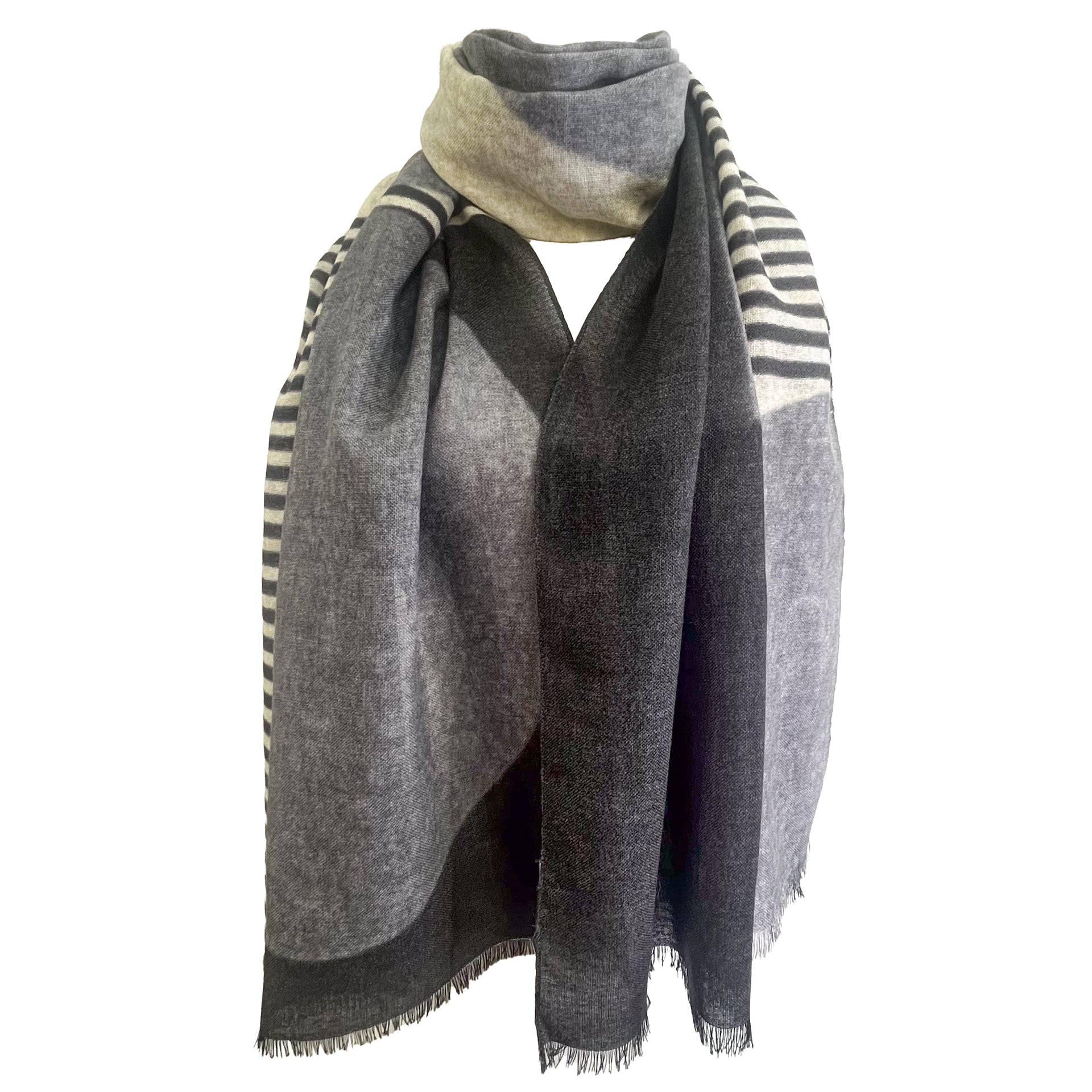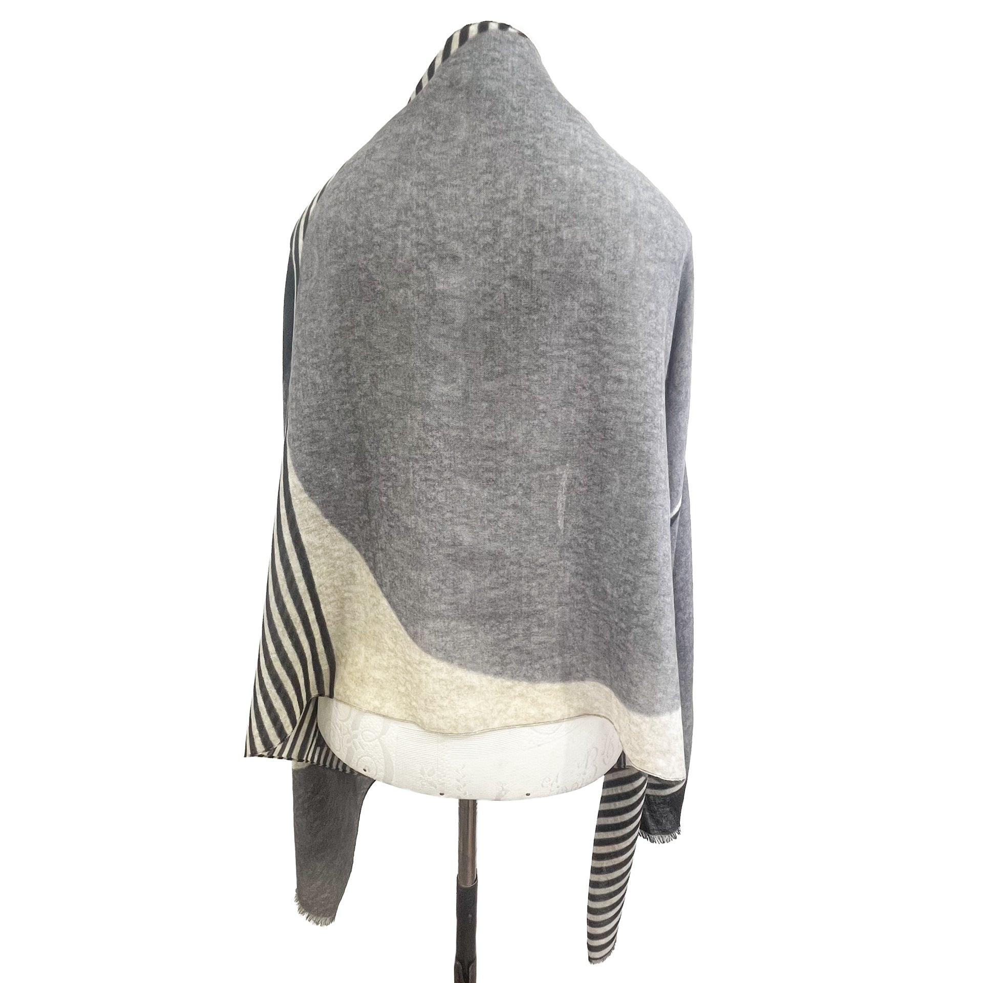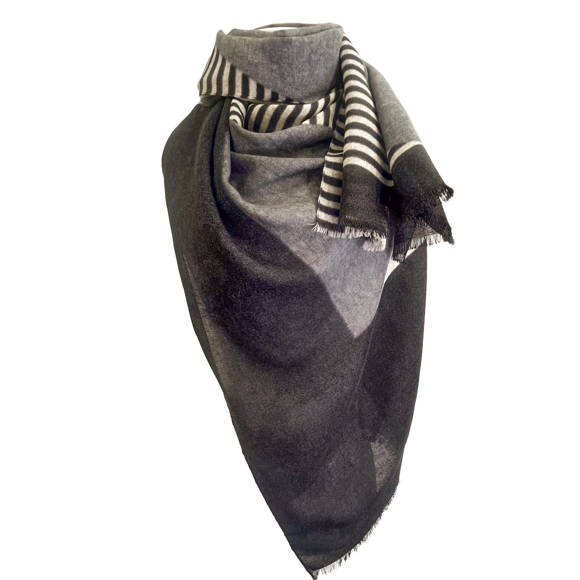 イタリア製ウールプリントストール(ブラック/ホワイト)