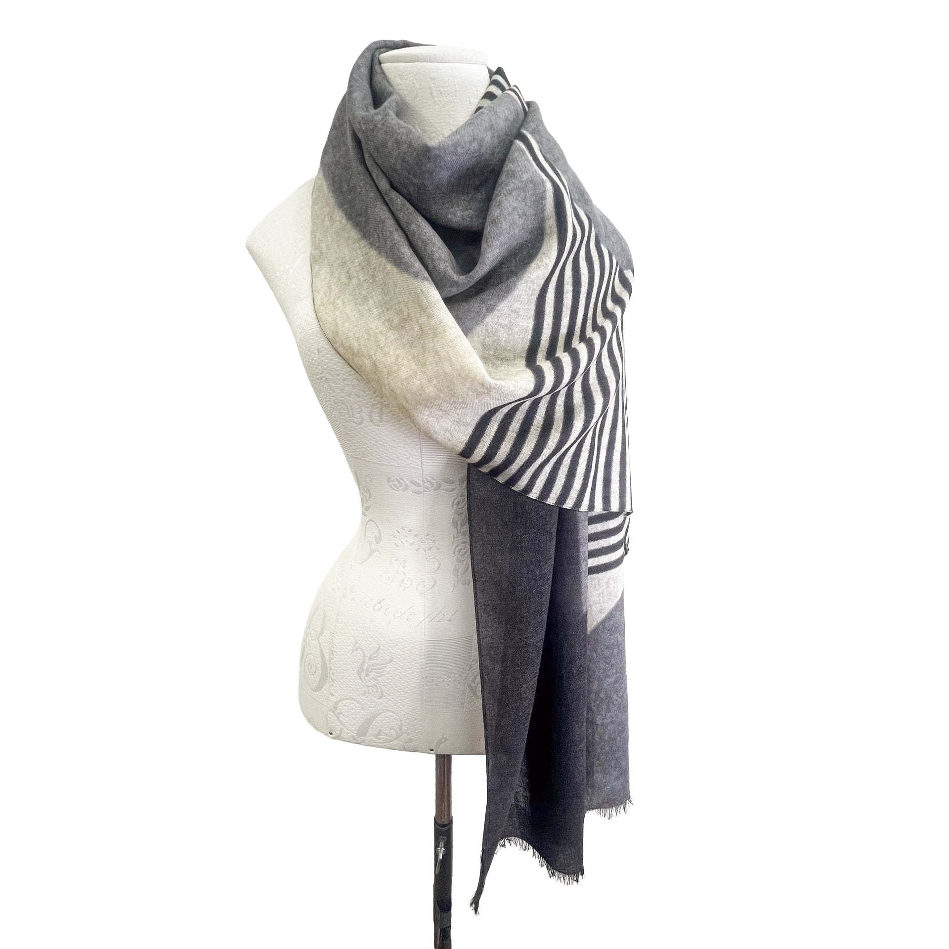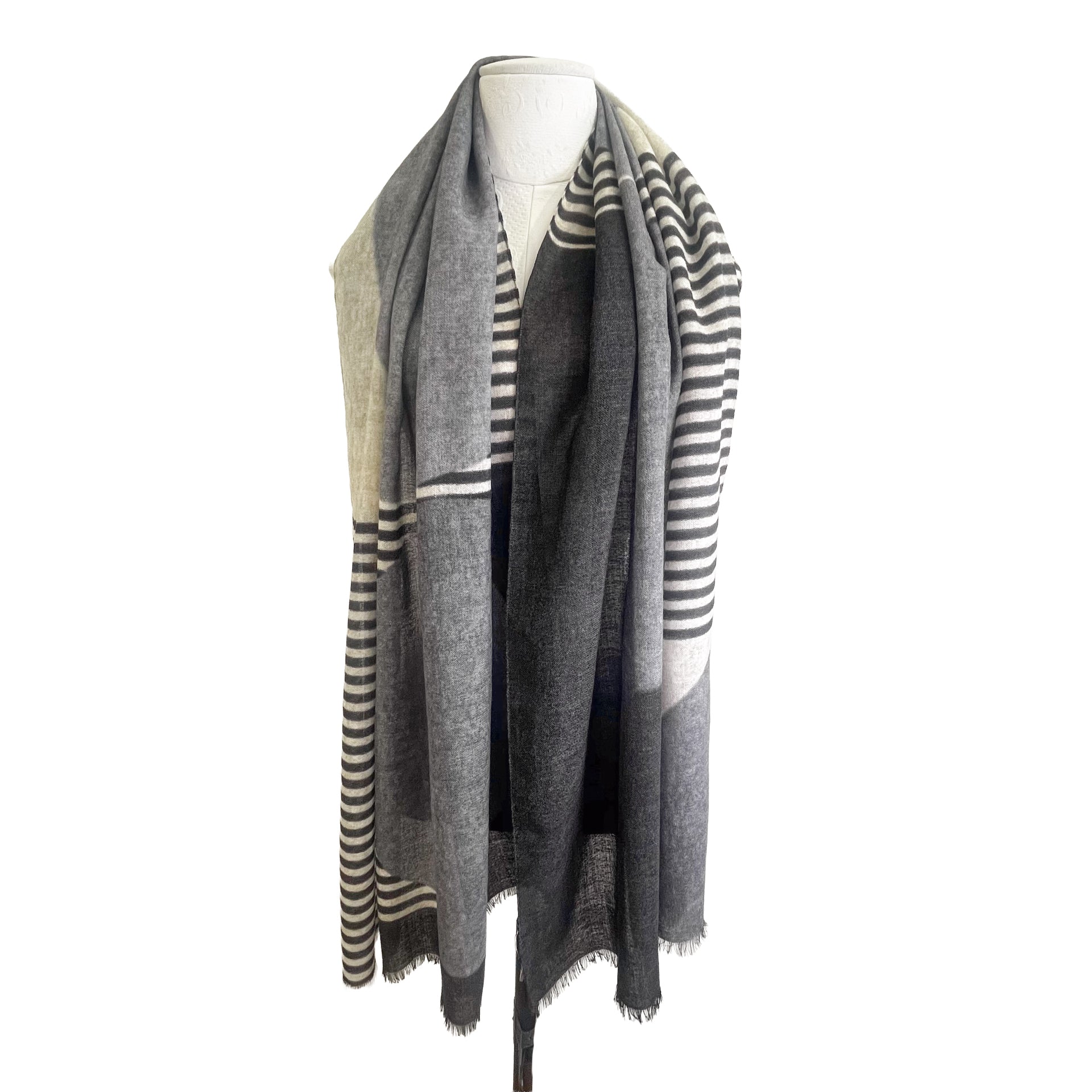 洗練されたジオメトリック柄が印象的な、イタリア製プリント生地のストール。