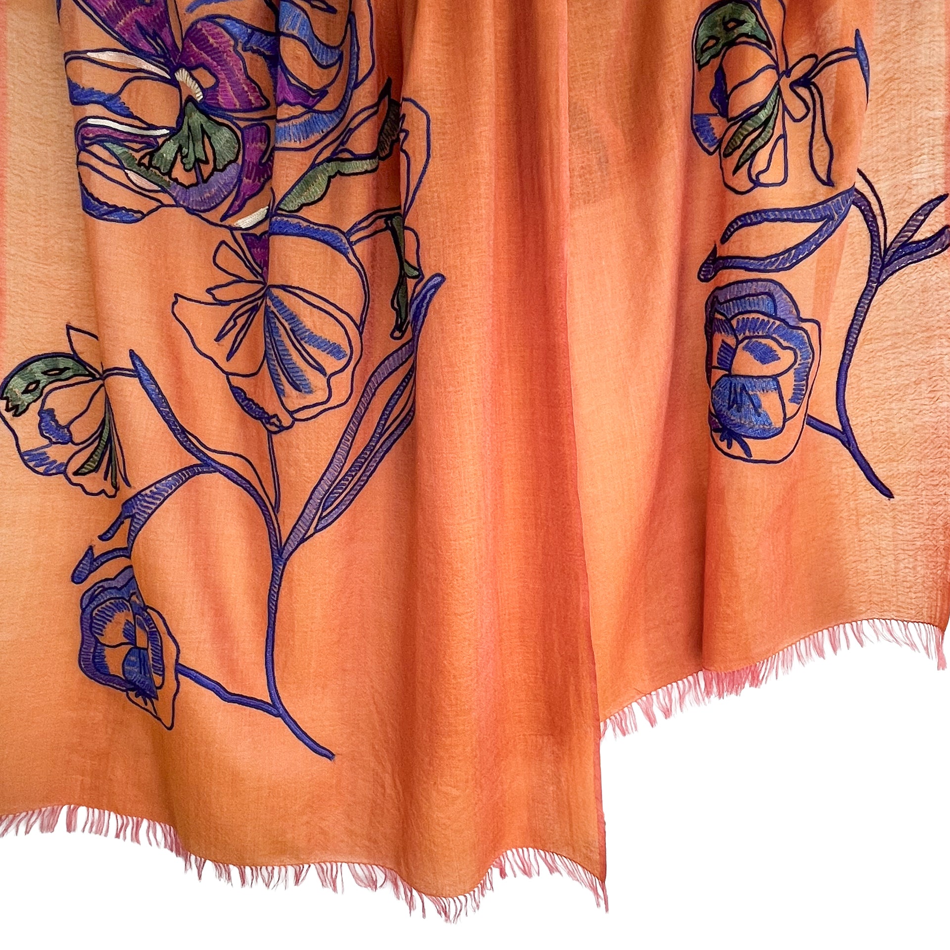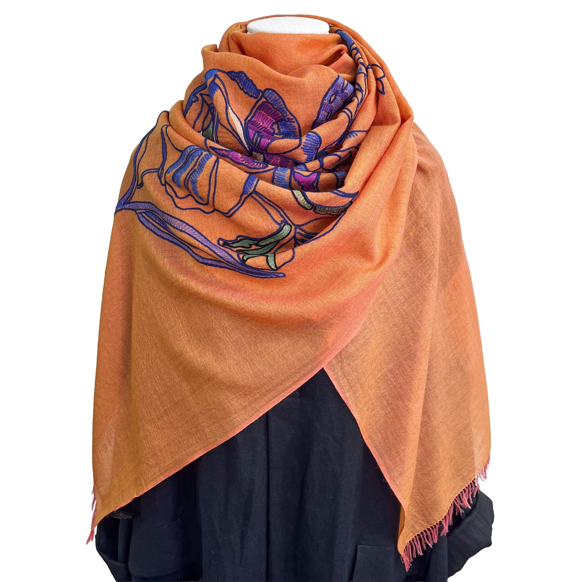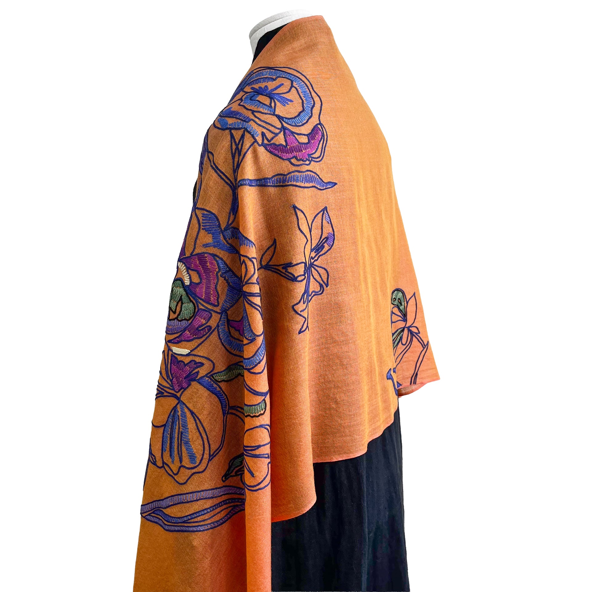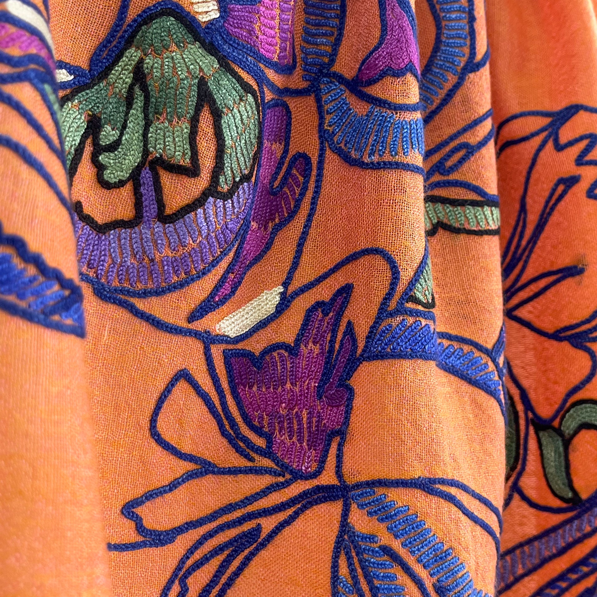 ウール&シルク アリー手刺繍ストール(オレンジ)